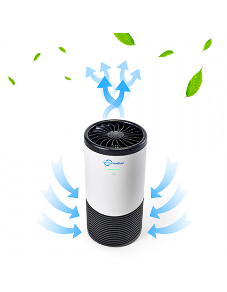 Le purificateur AIRVIA Aero 100 de la gamme AIRVIA médical propose une entrée d’air cylindrique à 360°.