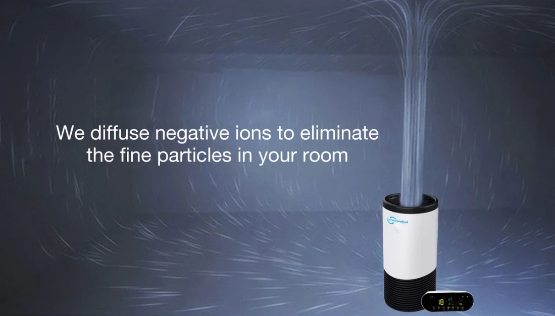 The AIRVIA Medical air purifier draws air into the room to filter organic waste and pollutants . It combines eight technologies to guarantee clean air , without nanoparticles or allergens: