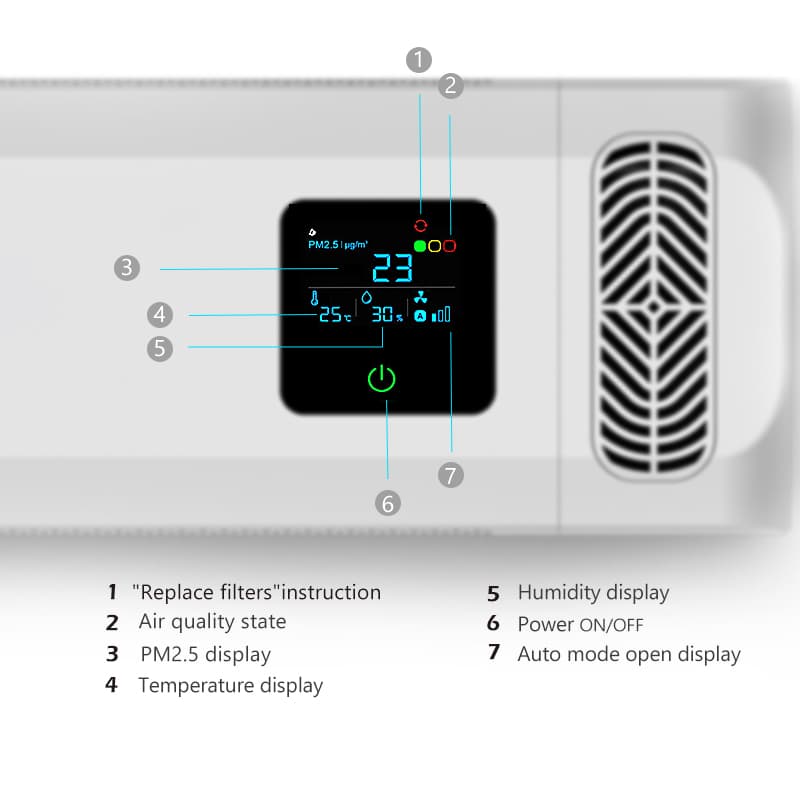 È possibile attivare la modalità automatica, regolare la velocità della ventola, controllare i livelli di inquinamento e tante altre funzioni.