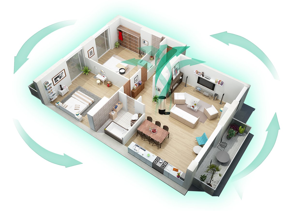 Il purificatore AIRVIA PRO 150 è quindi in grado di miscelare e purificare efficacemente